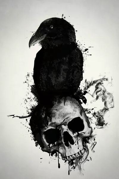 Raven Skull Magic - Gothic Raven Skull Drawing